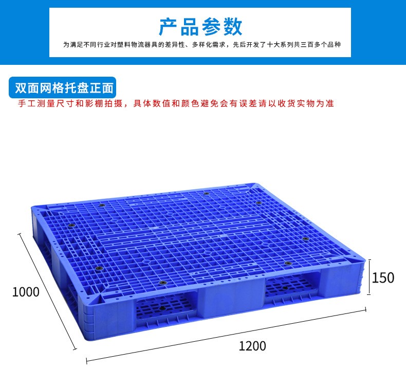 白(bái)色雙麵托盤因其(qí)潔淨度高,廣泛用於(yú)食品加工、藥(yào)品運輸等(děng)對衛生要求嚴格的領域(yù)。