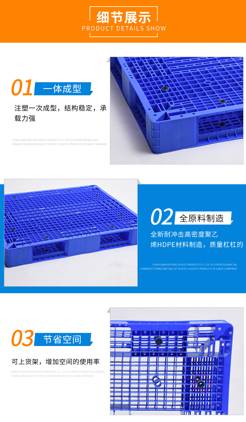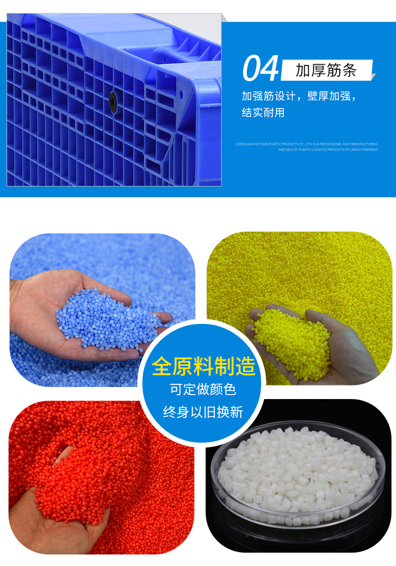 主要(yào)采用HDPE(抗衝擊高密(mì)度聚乙烯) ,具有(yǒu)高硬度、耐(nài)低溫性,適(shì)合(hé)冷庫和重載場景;PP(聚(jù)丙烯)則(zé)耐高溫,適用於高溫環境。